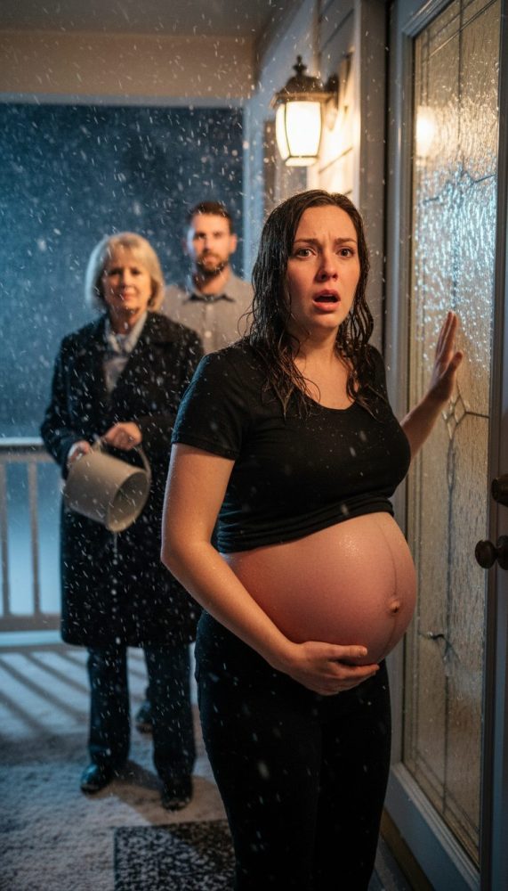 For a second I couldn’t even scream. The cold stole the sound right out of me. My clothes clung heavy and wet, and the wind turned every drop into a blade. I pressed my hands over my stomach, fighting to breathe slowly like my doctor taught me. In the distance, I could hear tires hissing on the road and the faint barking of a dog—normal life continuing while I stood locked out like I was nothing.