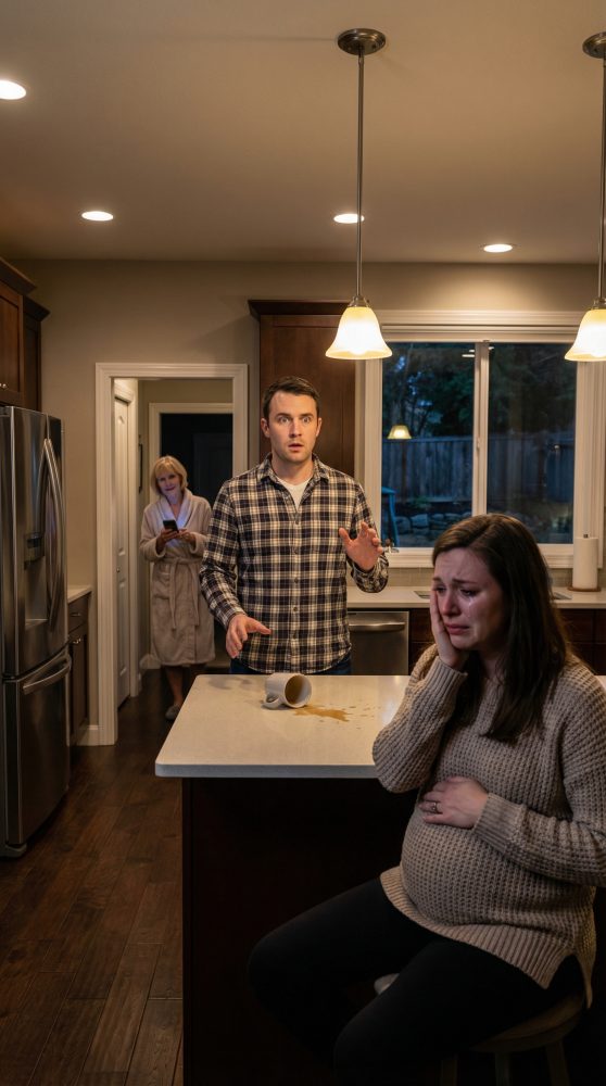 That night, she stood in our kitchen with one hand on her belly and the other gripping the counter like it might keep her upright. Her eyes were red, and I knew before she spoke.