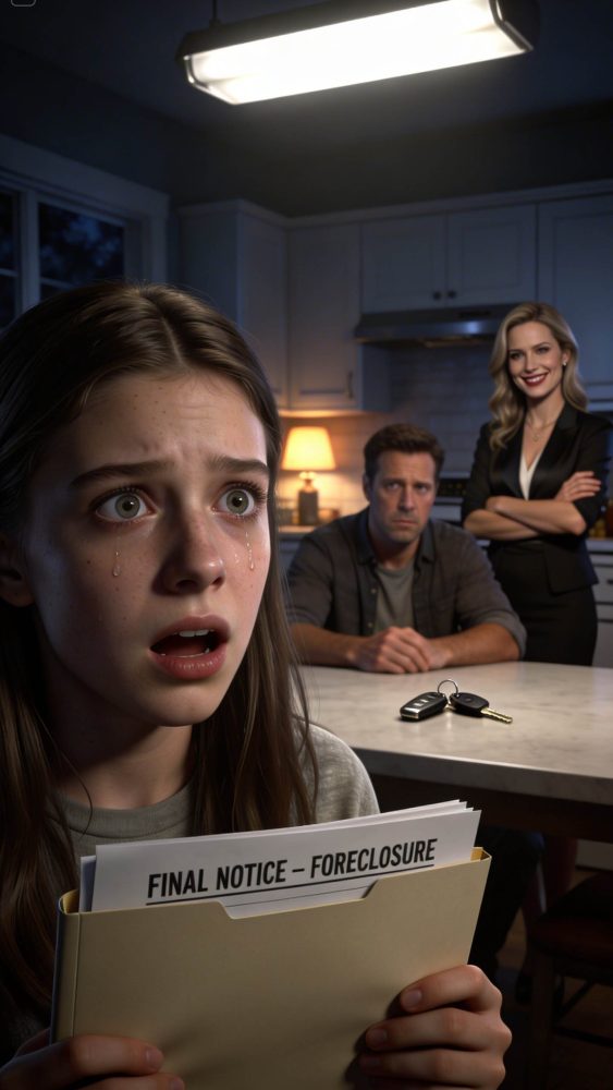 Se la arranqué antes de que pudiera detenerme. Mis dedos estaban torpes, temblando tanto que casi no podía sacar los papeles. La primera hoja decía en grande: AVISO FINAL. Abajo: EJECUCIÓN HIPOTECARIA. Nuestra dirección. Se me cayó el estómago.