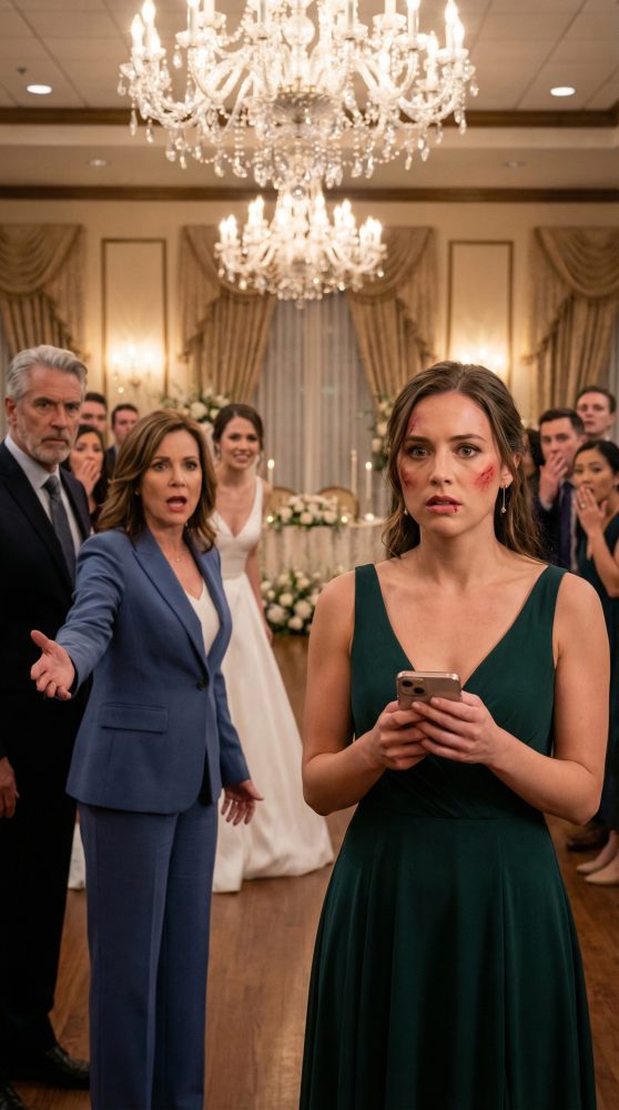Y entonces su palma estalló contra mi mejilla: un golpe limpio, rápido, como si lo hubiera practicado. El sonido cortó la recepción como un disparo. Las conversaciones murieron. Alguien cerca del pastel jadeó: “Dios mío”.