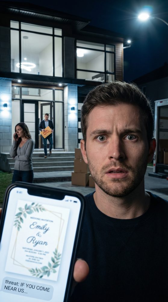Mientras estaba allí, noté un camión de mudanza en la acera y a dos hombres sacando cajas del garaje—demasiado tarde para una entrega normal. Entonces mi teléfono vibró con un mensaje de un número desconocido: “No vayas a la boda. Si apareces, la casa se pierde.”