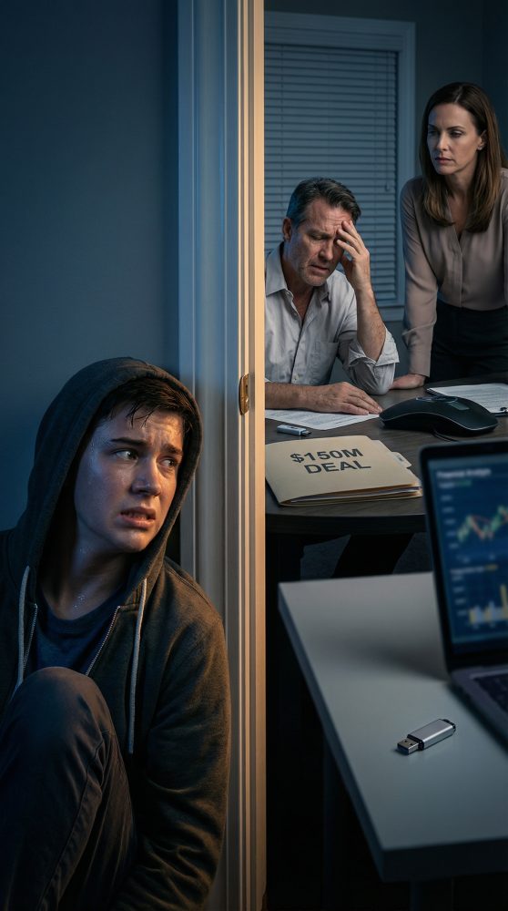 Condujo demasiado rápido. Faltamos a la escuela y fuimos directo a la sede de Hale Freight en el centro, el edificio de cristal que mamá solía llamar “la pecera”. Dentro, los ejecutivos se movían como fantasmas. Escuché “incumplimiento”, “filtración” y, una vez, “FBI”, susurrado como una maldición.