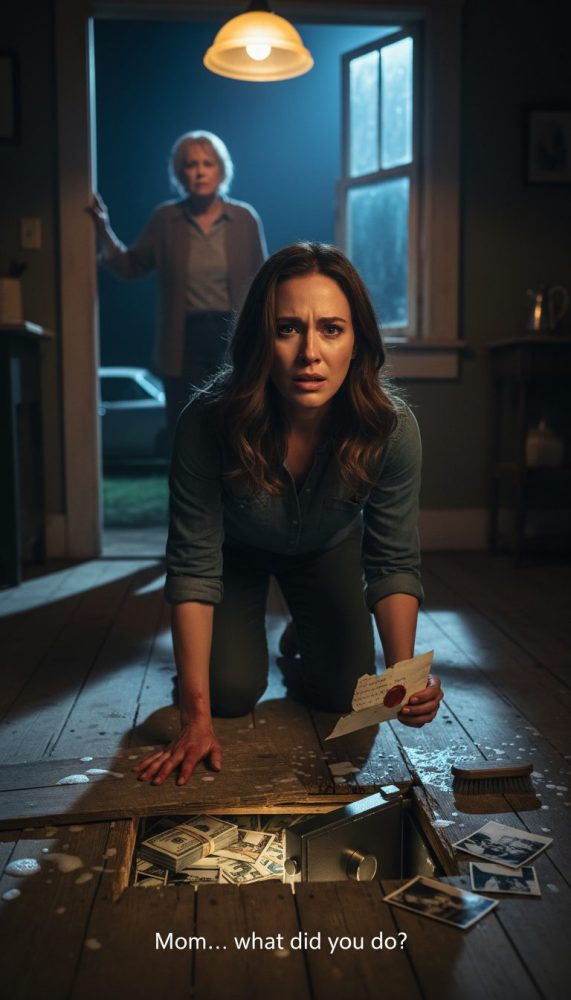 I stood, the red-sealed letter shaking between my fingers. “What is this, Mom?” My voice came out sharper than I meant. “Why is there cash under your floor? Why are there photos of Trevor at the courthouse?”