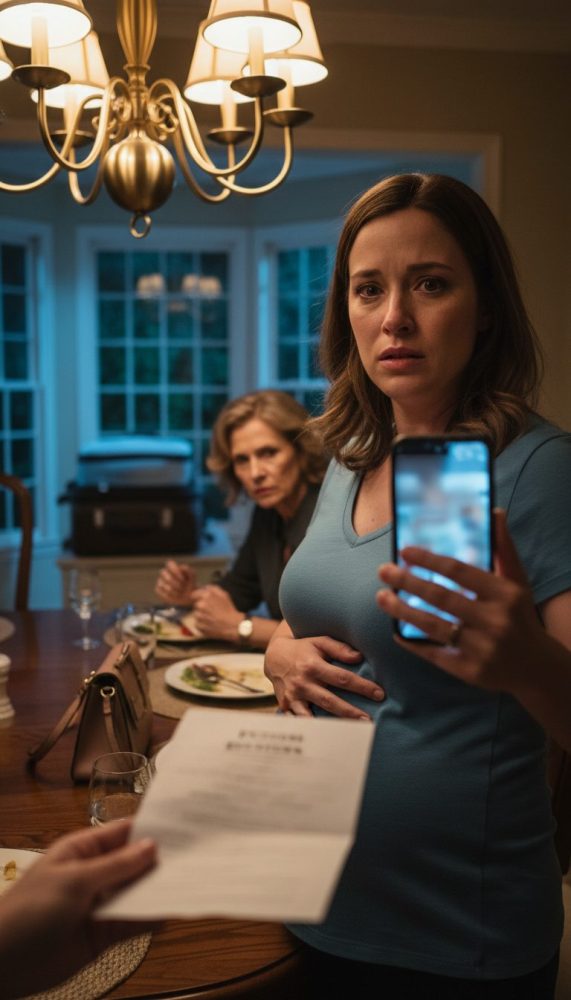 At Barbara’s house, the table was set too neatly, and Barbara’s smile was too bright. Derek sat beside her, quiet. I sat across from them with my hand resting on my belly, trying to keep my breathing steady.