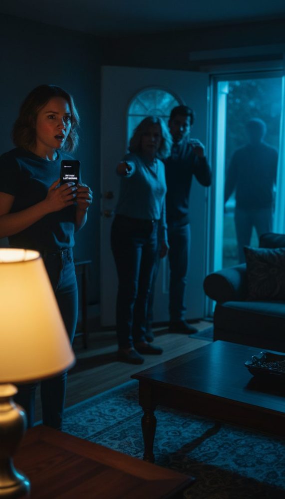Then Evan’s phone buzzed on the coffee table. He glanced at the screen, went pale, and whispered, “They’re here.”