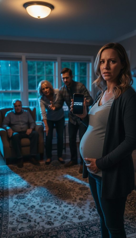 It happened at my in-laws’ house on a Sunday, the kind of family gathering that pretends to be “dinner” but really means judgment. The living room was packed—my father-in-law in his recliner, my husband, Nate, hovering near the hallway, and a couple of relatives who always showed up when there was drama.