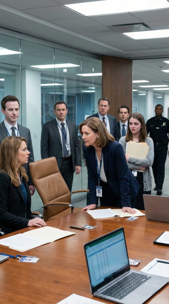 She met my eyes first, and something in me cracked—relief, fear, hope. Dana blinked, confused. Mr. Lang rose halfway. “Ma’am, this meeting is—”