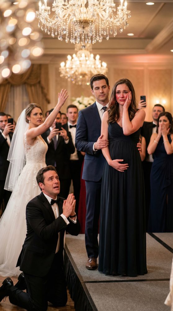 The room was dead silent now, as if the music had been unplugged. I could feel hundreds of eyes on my cheek, my stomach, my wedding-guest dress that suddenly felt too cheap for the marble beneath my shoes.