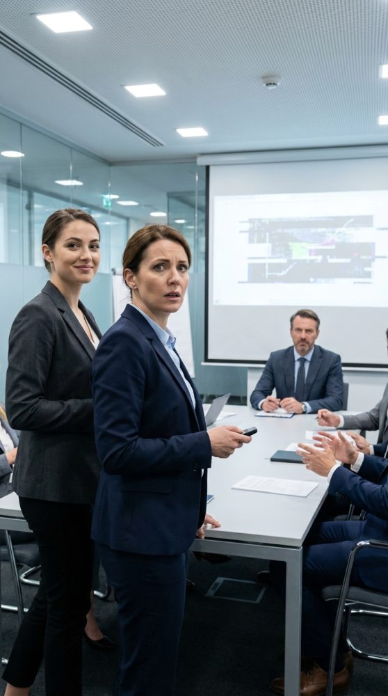 After the meeting, she cornered me near the elevators. Her voice was low, controlled, terrifyingly calm.