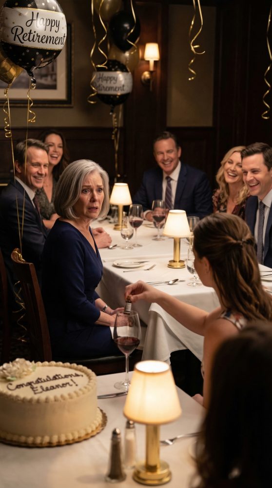 Ocurrió justo después de la cena, cuando la sala estaba llena de murmullos y nadie prestaba demasiada atención. Me había apartado de mi mesa para abrazar a una antigua compañera de trabajo. Cuando me giré para volver, vi a mi nuera, Lauren, de pie junto a mi silla. Miró por encima del hombro, luego se inclinó sobre mi copa de vino. Su mano se movió rápido, demasiado rápido, y vi algo pequeño caer de sus dedos dentro de la bebida.