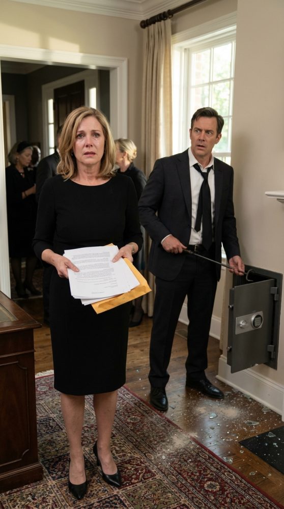 I stepped back before he could touch it. “You lost the right to say that when you broke into my husband’s safe at his funeral.”