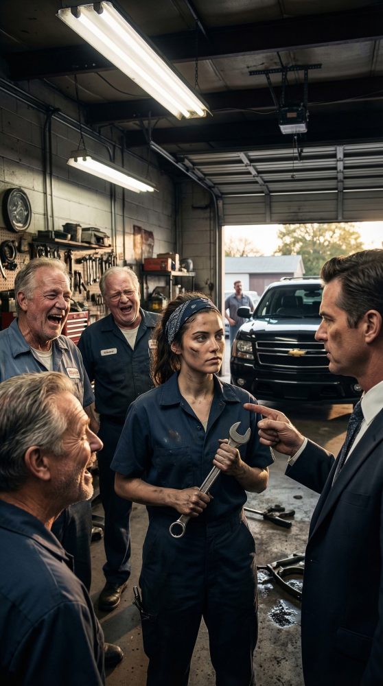 My name is Emily Carter, I was twenty-four years old, and I was the youngest mechanic at Ridgeway Auto Repair just outside Tulsa, Oklahoma. I had worked there for eleven months, long enough to know every rattle in the service bay doors and every kind of look a man gave a woman holding a torque wrench. Some were curious. Some were decent. Some had already decided I did not belong there before I even opened my mouth.