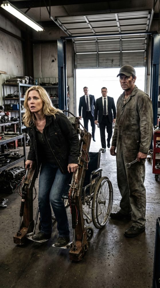 En la mañana del octavo día, una Escalade negra se estacionó frente al taller antes del amanecer. Bajaron dos hombres con chaquetas a medida. No eran locales. No eran clientes. Uno observó por la ventana mientras Luke me ajustaba las férulas. El otro hizo una llamada y no apartó los ojos de mí.