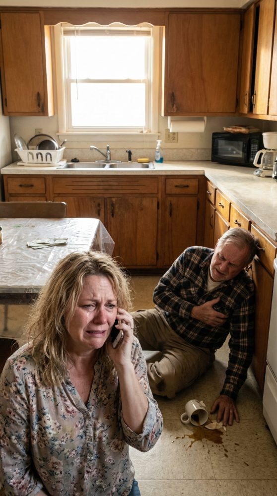 Al principio pensé que era rabia. Luego la taza se le resbaló de las manos y se hizo añicos en el suelo. Su rostro perdió el color. Dio un paso hacia la mesa, luego otro, y cayó con tanta fuerza que la silla a su lado se volcó.