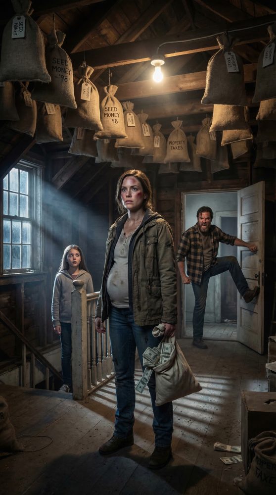 Estaba de pie en el ático, con una mano sobre el vientre y la otra aferrando una bolsa de tela llena de dinero, mientras escuchaba a Derek cerrar la puerta de su camioneta afuera. Un segundo después, Ellie me llamó desde abajo.