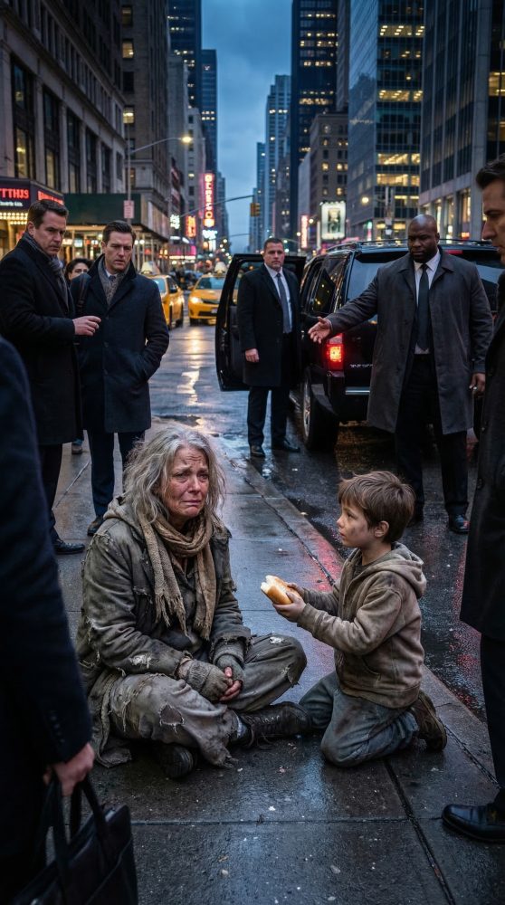 Tomé el sándwich con las manos temblorosas. Antes de que pudiera decir otra palabra, dos hombres de traje oscuro bajaron de una camioneta negra de lujo al otro lado de la calle, mirándome directamente como si por fin hubieran encontrado lo que llevaban tiempo cazando.