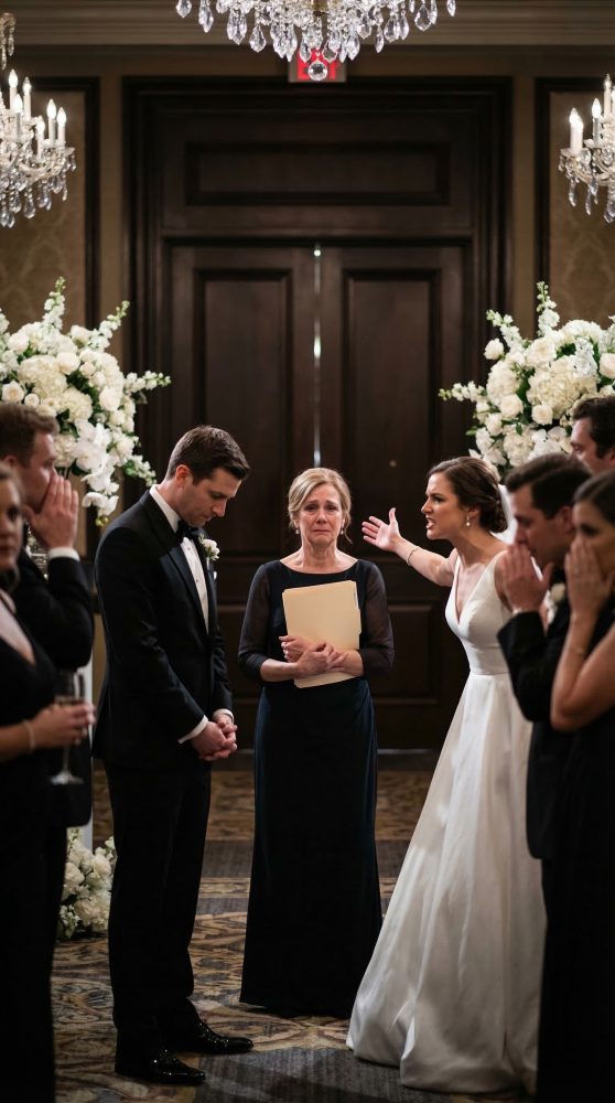 La floristería había comenzado a retirar los arreglos premium que aún no se habían entregado por completo. El gerente del catering discutía con la dama de honor de Vanessa por el saldo pendiente. La organizadora de la boda parecía a punto de desmayarse. Al otro lado del salón, Ethan caminaba de un lado a otro con la corbata floja y el rostro pálido.