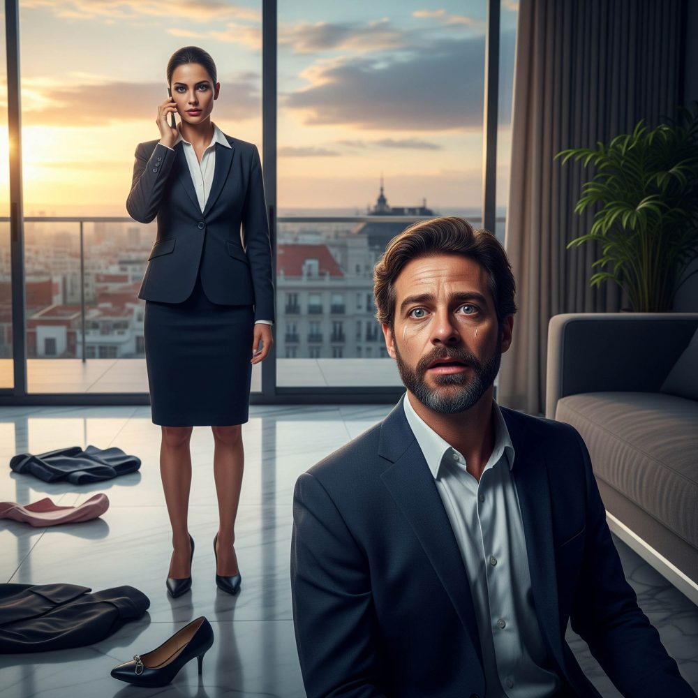 Tras un breve viaje de trabajo a Barcelona, Clara regresó a su ático en el barrio de Salamanca una mañana lluviosa. Apenas cruzó la puerta, percibió algo fuera de lugar. Sus zapatos tirados por el suelo, su armario abierto, ropa doblada desordenadamente sobre la cama. En el centro del salón, David la esperaba con los brazos cruzados y expresión de desprecio.