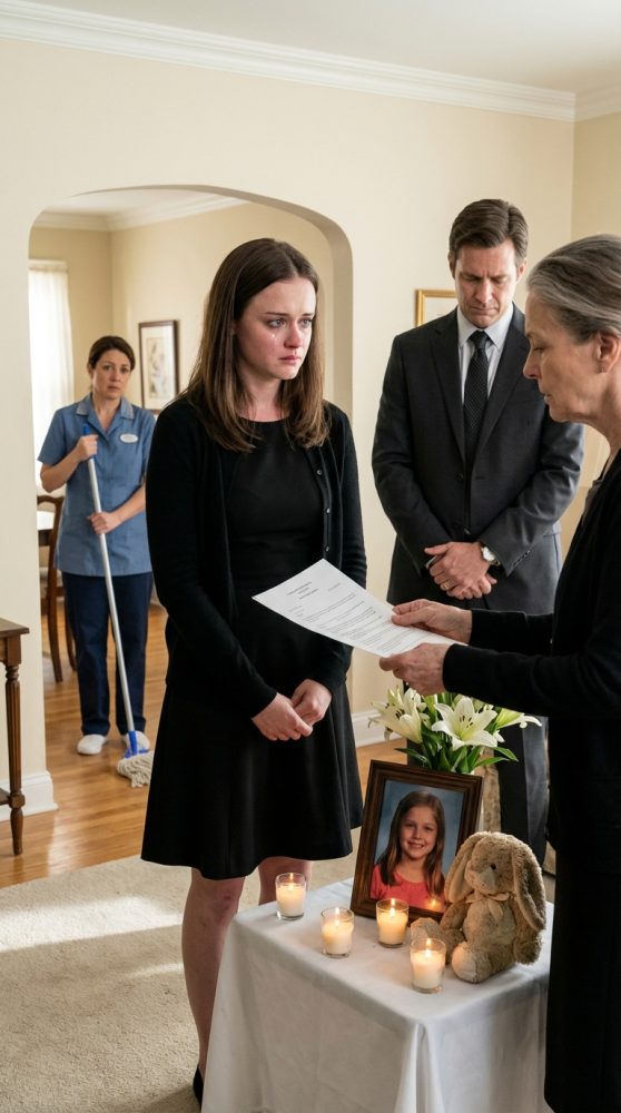 Her name was Sharon Bell, and she stood beside the folding memorial table in my living room with a legal pad in one hand and a black ink pen in the other, as if we were handling a property dispute instead of mourning a four-year-old child. White candles flickered beneath framed photos of my daughter, Emma. Her favorite stuffed rabbit sat beside a glass bowl of dried lavender. People from church had brought casseroles, flowers, sympathy cards, and that soft, helpless tone people use when they don’t know what to say. But Sharon brought paperwork.