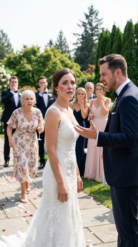 The sound was sharp, unbearable. Some guests screamed. Others lowered their eyes, uncomfortable, cowardly. I stood frozen, my cheek burning, my mouth filling with the metallic taste of blood.
