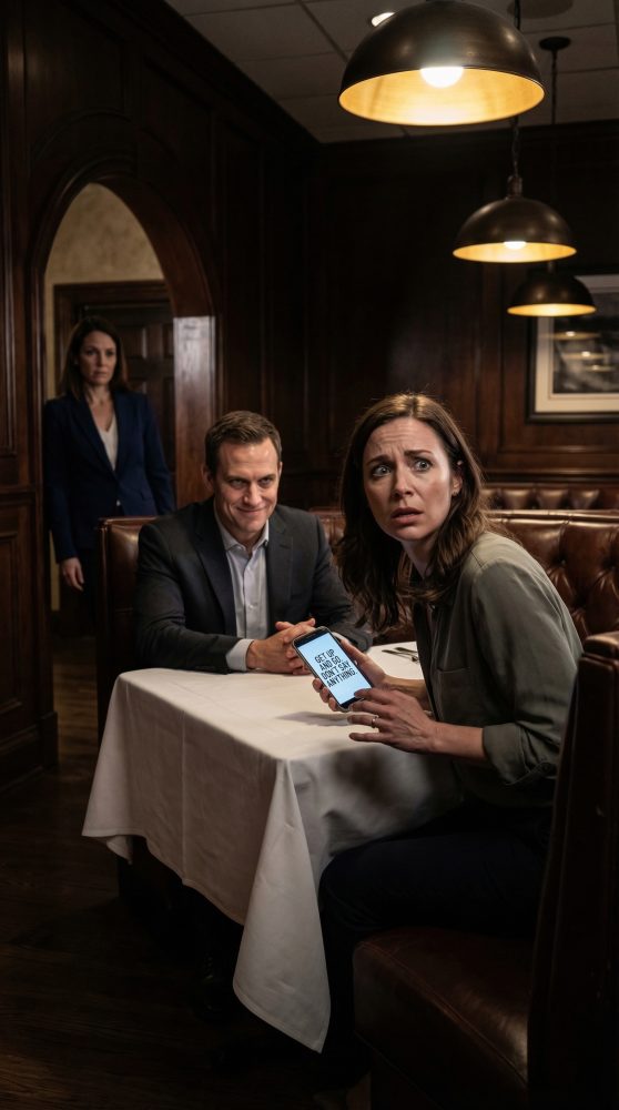 Intenté estabilizar mi respiración y miré alrededor del restaurante sin mover la cabeza. Fue entonces cuando la vi cerca de la entrada: una mujer con un blazer azul marino, medio girada hacia el atril de recepción. No estaba cenando. No esperaba a nadie. Me estaba observando.