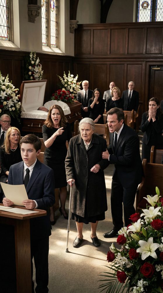 La sala estaba envuelta en música suave de órgano y en ese tipo de dolor elegante que el dinero compra cuando el amor falta. Rosas blancas rodeaban el ataúd. En una pantalla se proyectaba una presentación de mi vida pública: galas benéficas, inauguraciones, portadas de revistas, retratos navideños familiares tomados años antes de que la podredumbre se instalara. Grant se quedó congelado en el atril. Vanessa se llevó una mano a la garganta. Kyle incluso dio un paso atrás, tambaleándose.