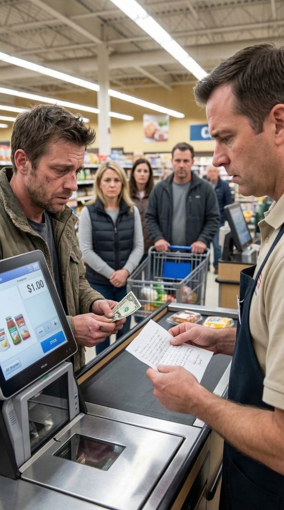 Before I could answer, the store manager walked over, picked up the note, and read it silently. The laughter faded. His face changed. Then he looked up at me, at the people in line, and said in a cold, clear voice: