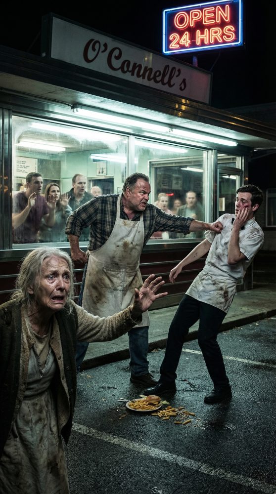 My name is Martha Collins, and at sixty-eight years old, I never imagined I would end up standing in the cold behind a row of parked cars, staring through the bright front windows of a family restaurant and wondering whether I had the strength to beg for food. The sign above the door read Dawson’s Grill, a place where people laughed over burgers and fries while I pressed one hand against my empty stomach and tried not to faint.