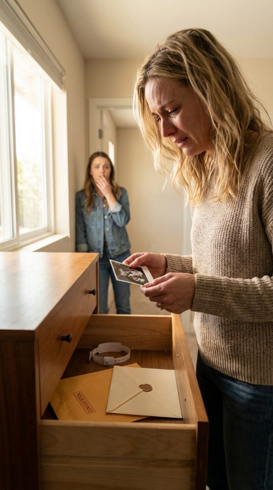 I stood there staring down at the drawer like it had opened into someone else’s life. The ultrasound photo was slightly bent at one corner, exactly the same way it had been when I shoved it into my purse in the emergency room. My hospital bracelet still had my name, date of birth, and admission number on it. The sealed letter was from the hospital billing department, postmarked two days after I was discharged. And the discharge summary was not a duplicate of the one I had at home. This version had additional pages clipped behind it.