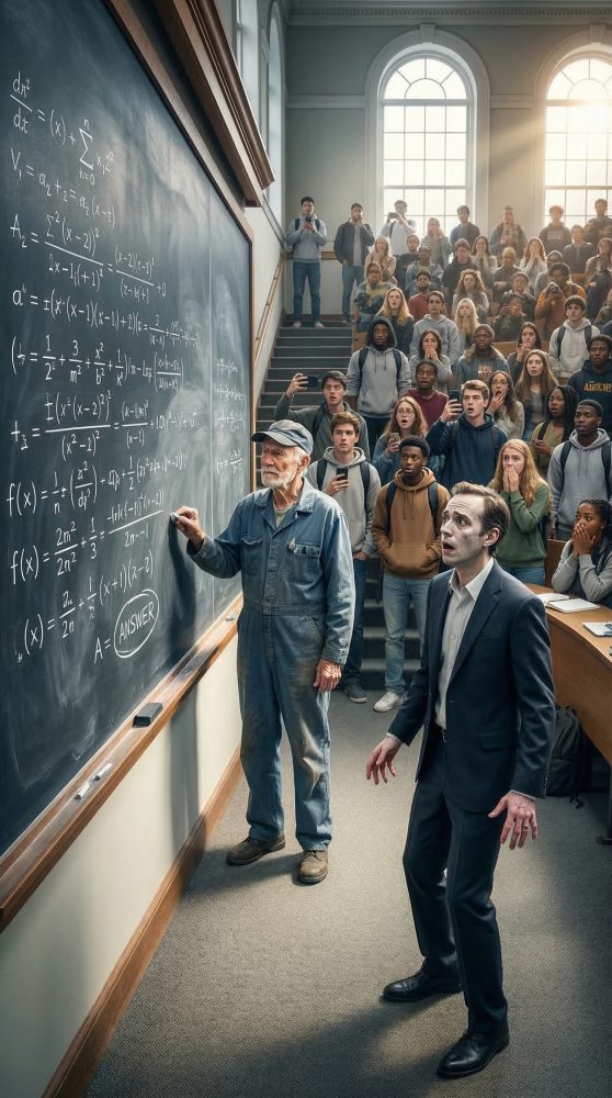 Whitmore caminó alrededor de la pizarra con una tiza en la mano, golpeando con ella la última línea de la ecuación. “Esto”, anunció, “es la razón por la que la elegancia matemática pertenece a mentes disciplinadas. No a las suposiciones. No a la suerte. Y definitivamente no a los aficionados.”