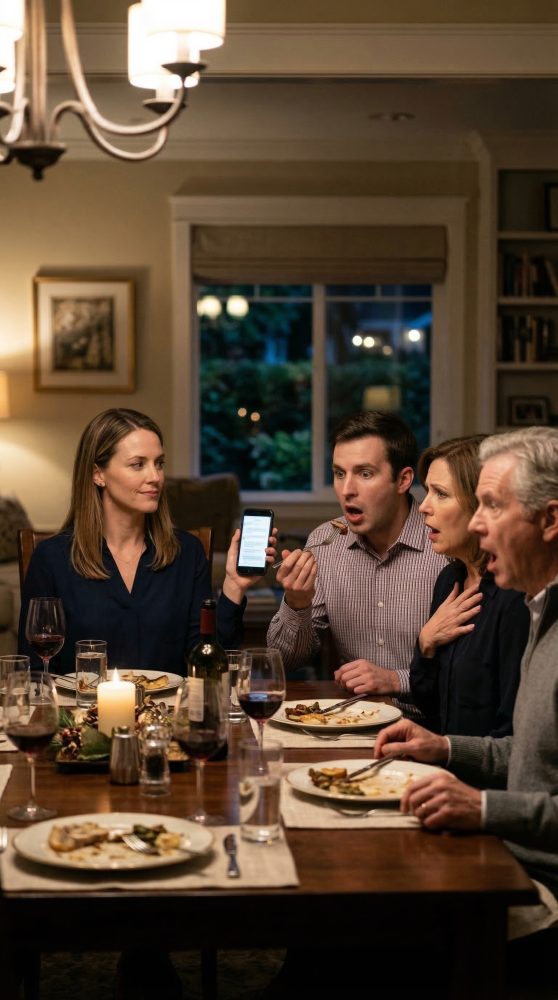 Tyler’s fork froze mid-air. Mom’s smile slid off her face as if gravity finally worked. Dad blinked hard, like he was waiting for the punchline.