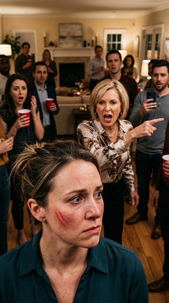 When she opened the door, she wore yesterday’s party outfit like armor. She looked at my face, still bruised, and didn’t flinch.