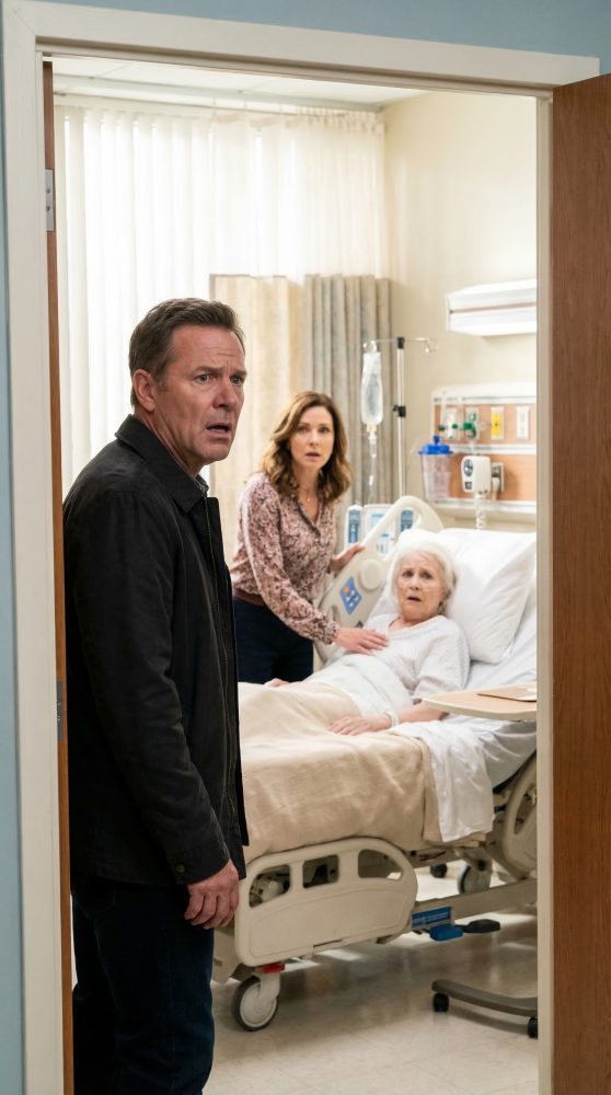 For one suspended second, none of us moved. The fluorescent lights hummed overhead. A monitor beeped in slow, steady intervals. My wife, Vanessa, stepped back from the bed so quickly she almost tripped over the chair behind her. “Luke,” she said, breathless, “this isn’t what it looks like.”