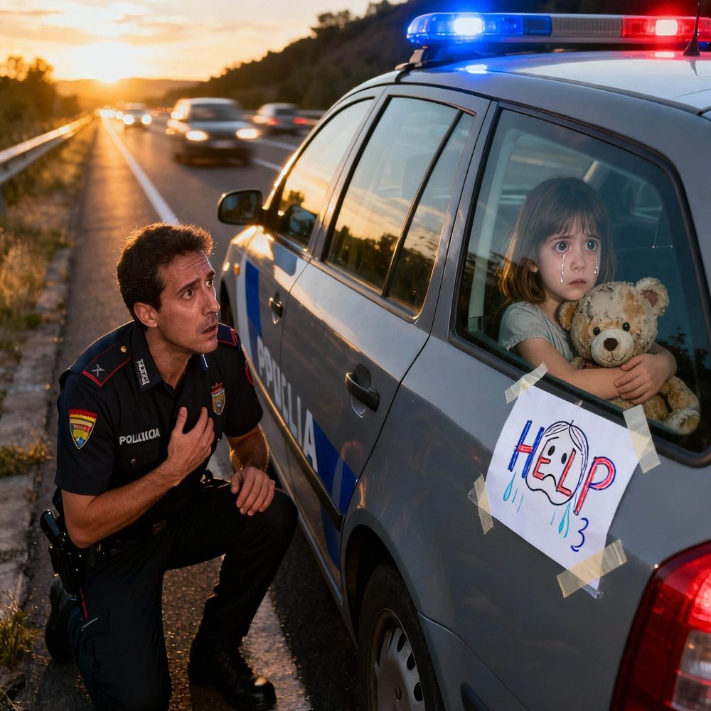 A las 16:18 de una tarde fría en la carretera A-2, cerca de Zaragoza, el agente Iván Montes redujo la velocidad tras ver algo fuera de lugar. Entre los coches que avanzaban hacia Barcelona, un sedán gris destacaba sin hacer ruido, sin saltarse normas… pero con un detalle imposible de ignorar. En la ventanilla trasera derecha, había un papel blanco pegado torpemente con cinta.