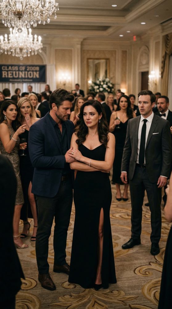 Ethan hated anything sentimental, anything that involved old classmates, small talk, or dancing to songs from two decades ago. Yet there he was at the entrance of the ballroom in dark jeans and a button-down shirt, looking like a man who had walked into the wrong story and suddenly realized it might not belong to him anymore.