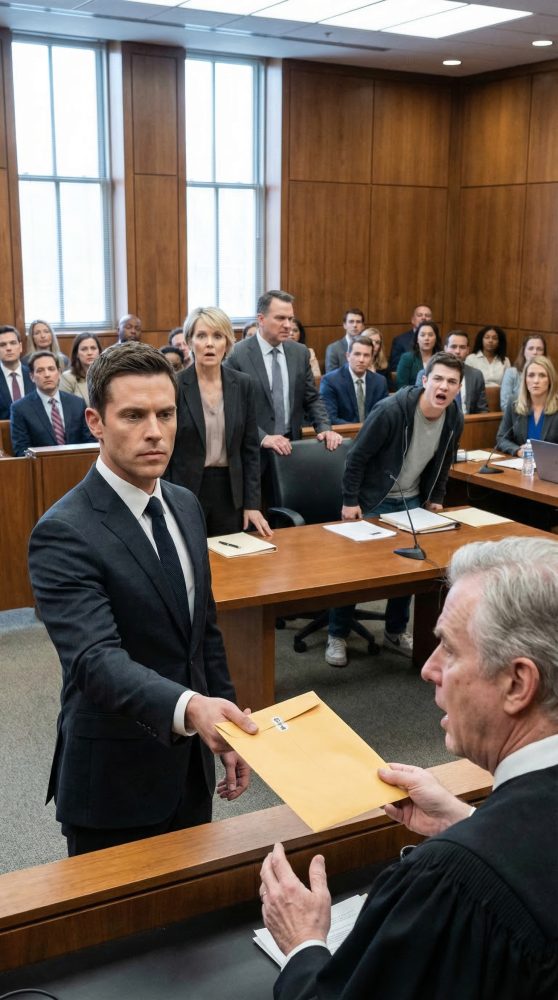 I didn’t answer anyone. I walked straight down the aisle in the only suit I owned, feeling every eye in that courtroom drag across my face. The clerk looked like she’d forgotten how to blink. My father recovered first.