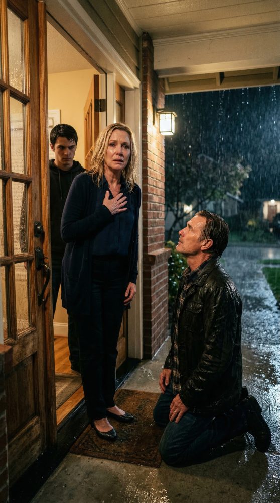 Rain tapped against the porch light. My hand trembled at my side. Noah stepped in front of me, shielding me with the instinct I used to have for him when he was small.