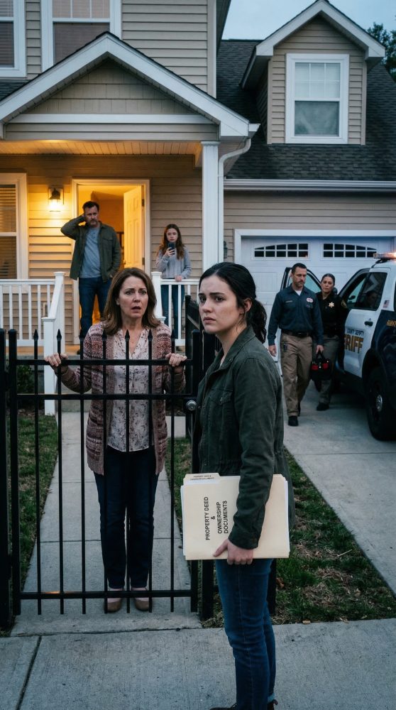 The deputy, a middle-aged man with a tired expression, stepped beside me. “Ma’am, I’m only here to keep the peace. Ms. Bennett’s name is on the deed and mortgage documents she provided. She has legal right to access the property.”