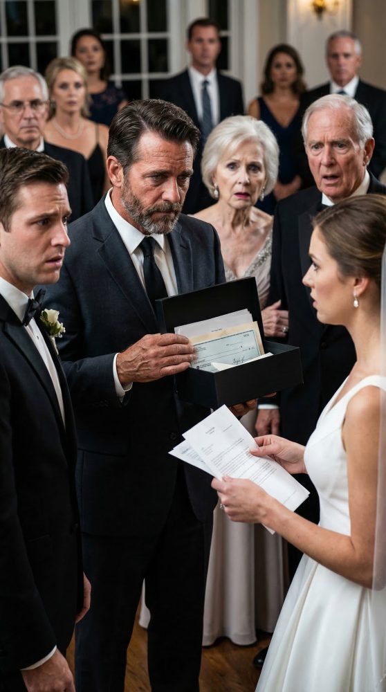 So on the wedding day, I put on my best suit, drove to the country club, and walked in carrying a black gift box with a cashier’s check made out to the venue and a folder full of evidence.