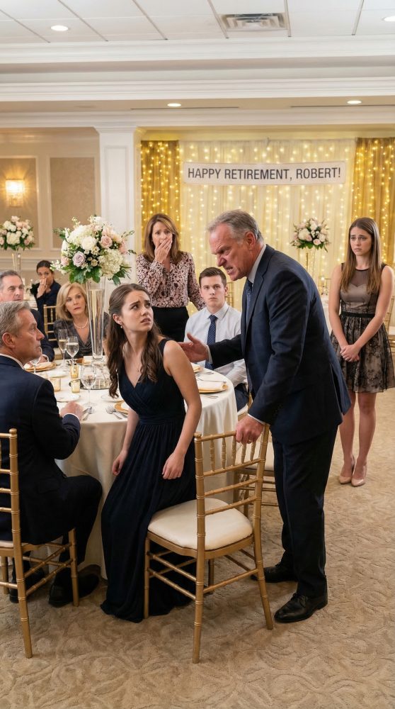 The banquet hall was packed with relatives, former coworkers, neighbors, and old family friends. Gold balloons floated above the tables. A slideshow of my father’s career played on a screen near the bar, showing him in uniform, shaking hands, smiling in ways I rarely saw at home. My mother, Diane, had asked me to come early to help set out place cards and gift bags. I did. I arranged centerpieces, fixed crooked napkins, and smiled until my cheeks hurt.