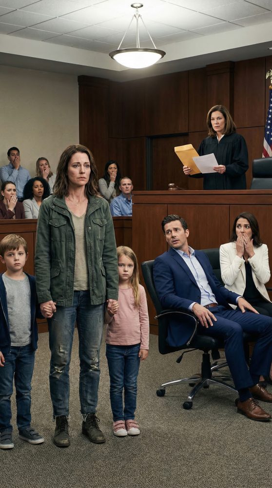 I stayed seated for a moment after everyone started leaving. Emma climbed into my lap. Ethan leaned against my shoulder. I remember looking around that courtroom—the same room where people had stared at our clothes, judged our silence, and assumed they knew how this story would end. They saw a poor woman with two children and thought that meant powerless. What they didn’t see was what survival teaches you: how to endure long enough for the truth to catch up.