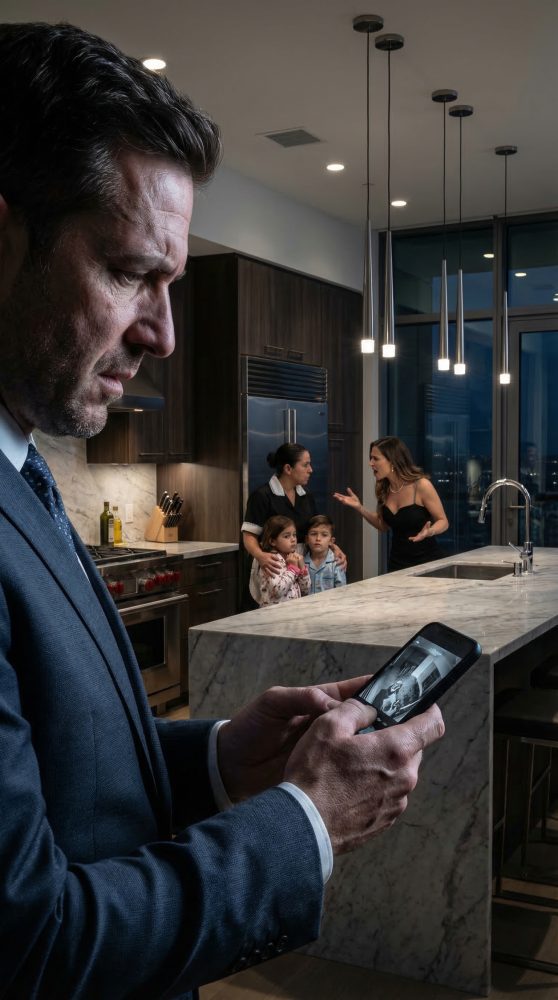Instead, I saw Vanessa in the kitchen, gripping the edge of the marble island so hard her knuckles turned white. Elena stood across from her, trying to shield my two children—Ethan, eight, and Lily, six—who were sitting at the breakfast table. My son looked frozen. My daughter was crying.