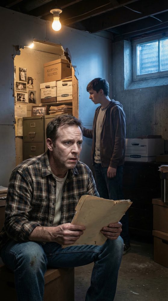 Instead, I found my sixteen-year-old standing in the driveway, pale as drywall dust, clutching a manila folder to his chest. His hands were dirty, his eyes fixed on the basement window like something might look back.