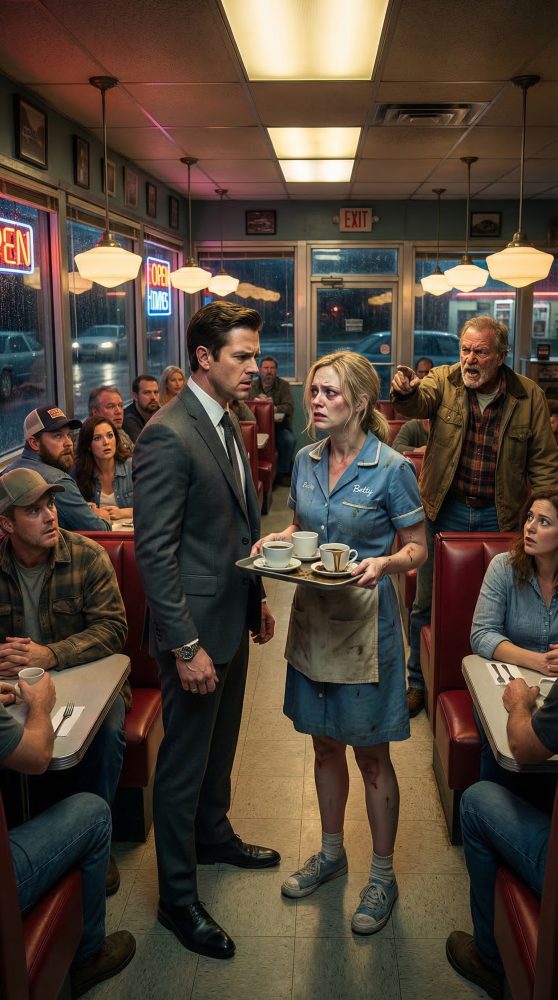 Entonces la puerta del diner se abrió de golpe, una ráfaga de aire frío entró, y dos hombres con trajes oscuros cruzaron la entrada preguntando por Emily por su nombre.