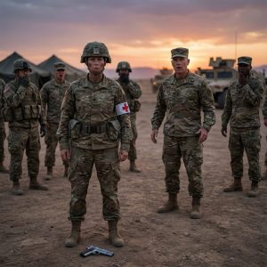 The first shot cracked the air like a whip, snapping every conversation on the training range into silence. I stood frozen, boots sinking slightly into the dusty ground of Fort Graystone, my medic armband bright against my sleeve. General Richard Hawthorne didn’t miss on accident. He fired again. And again. Five rounds in total, each one slamming into the dirt inches from my feet.
