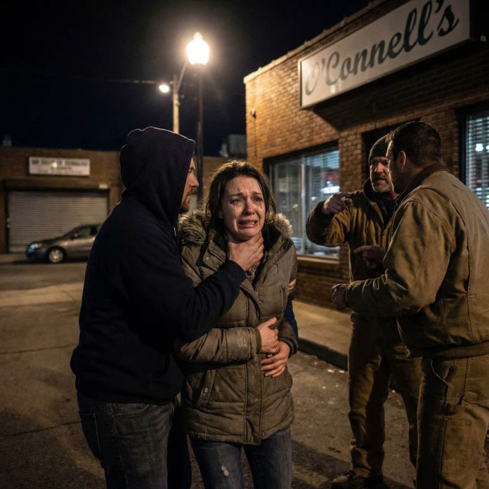 There were three of them. Early twenties, loud, cocky, drunk on the idea that no one would stop them. One held her, another rifled through the restaurant’s cash drawer that had been dragged outside during the chaos, and the third kept watch, laughing like it was all a joke. They didn’t notice me standing twenty yards away, half in shadow, half behind a parked truck.