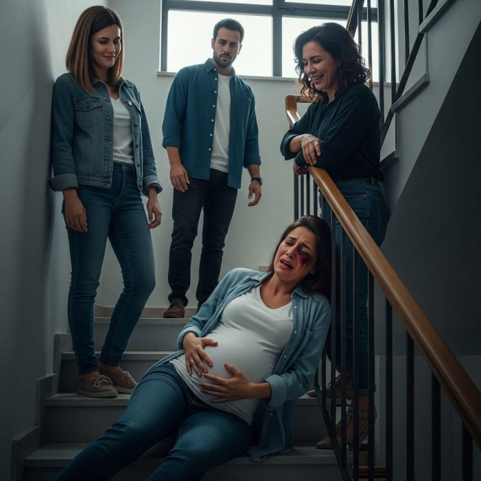 No tuve tiempo de reaccionar. Sentí el empujón seco en la espalda, el vacío bajo mis pies, los escalones golpeándome el costado y la cabeza. Caí rodando, con el cuerpo protegiendo instintivamente mi vientre. En medio del ruido y el dolor, escuché la risa de Carmen.
