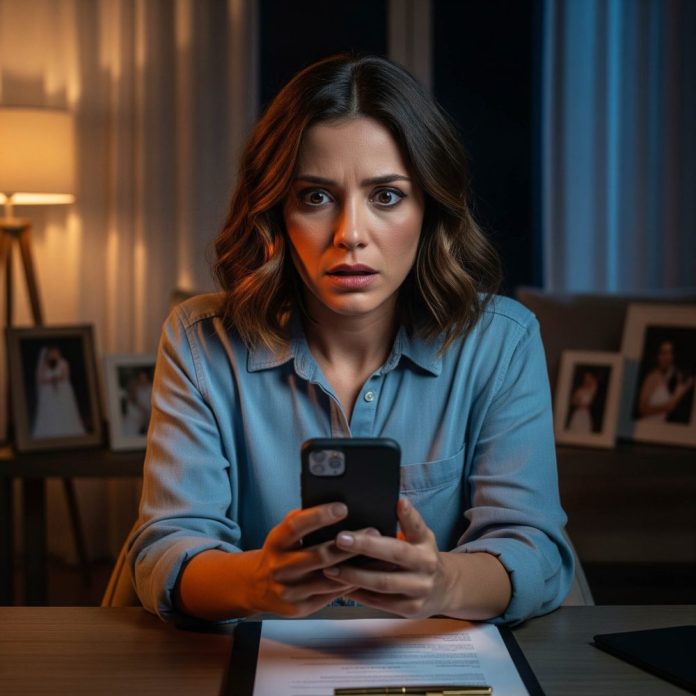 Ella sacó su móvil, abrió la app del banco y gritó: