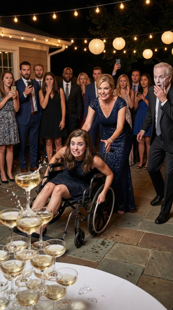 La fiesta de compromiso se suponía que sería una noche fácil: luces colgantes en el patio trasero de mis padres, una torre de champán, y mi hermana Madison moviéndose como si fuera dueña del aire. Le había prometido a mi mamá que iría, aunque las multitudes me tensan la espalda y la silla de ruedas siempre termina siendo “el tema”. Aun así, llegué con un vestido azul marino, el cabello rizado y una sonrisa ensayada.
